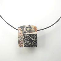 S395 black orange and red 3 swirl bead pendant. SOLD